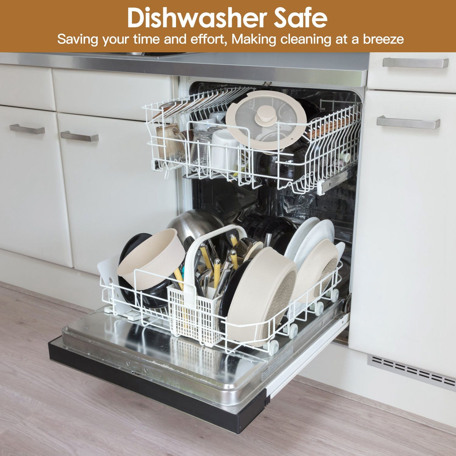*Fast & Even Heat Induction*:Energy-saving aluminum alloy bottom makes the pan to heat up more quickly,evenly,absorbs heat efficiently and penetrates the food to stimulate and release the original flavor of the food. Heat resistant up to 480℉,dishwasher safe,making cleaning at a breeze.